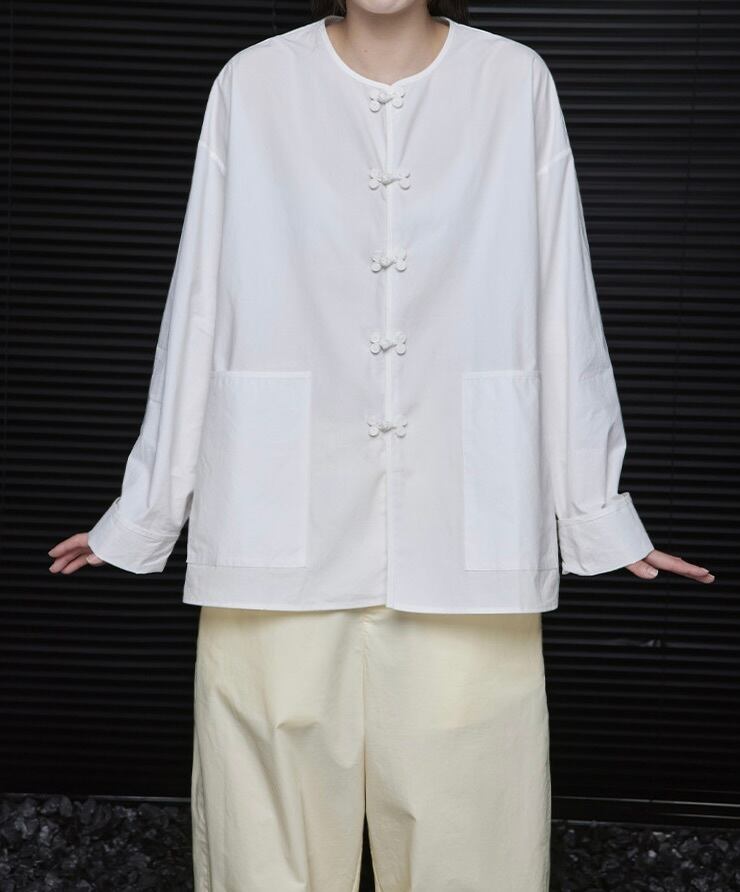 チャイナボタンがアクセントに。1枚着るだけでこなれた印象を与える、スタイリッシュなアイテムです。