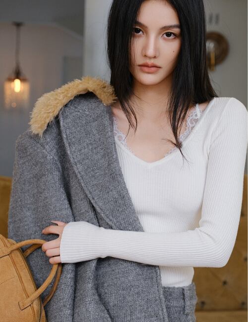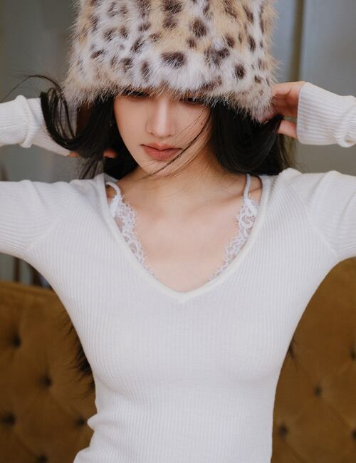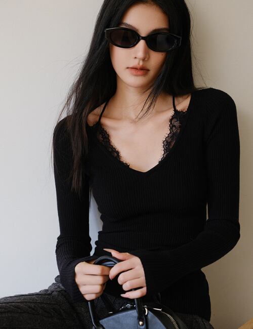 魅力的な「Lace Trim V-Neck Slim Top」が新登場です!