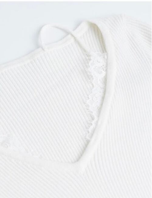 Lace Trim V-Neck Slim Top