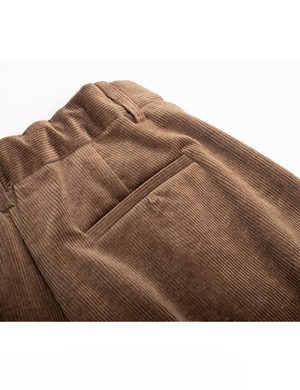 このパンツは、柔らかいコーデュロイ素材を使用しており、快適な履き心地が魅力です。ゆったりとしたワイドレッグのシルエットは、リラックスしたスタイルを提供しつつ、カジュアルにもフォーマルにも合わせやすいデザインです。
