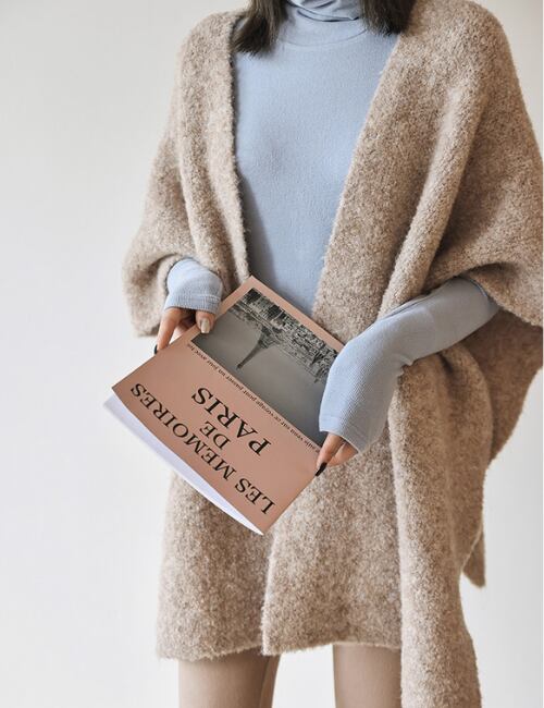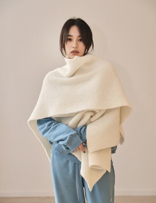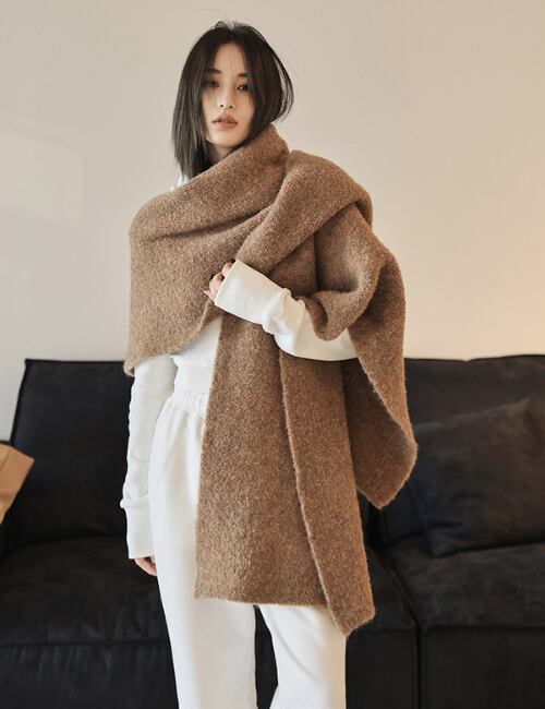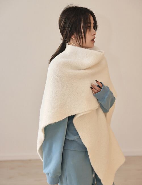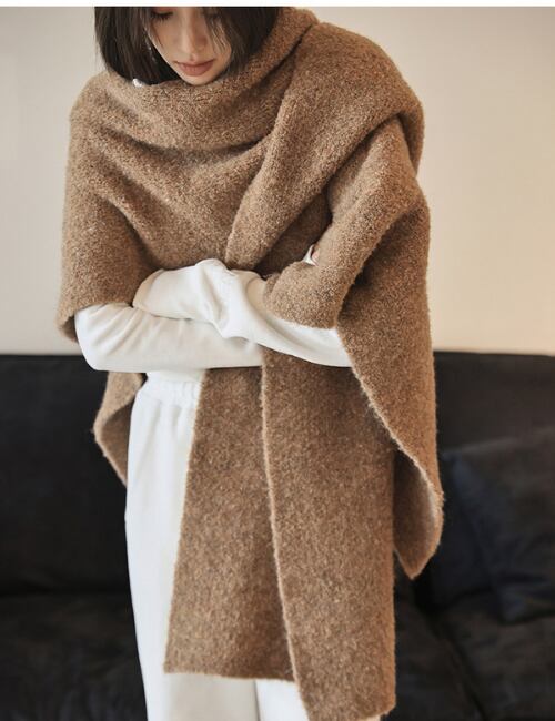 このショールは、厚みと暖かさを兼ね備えたウール素材で作られており、肌寒い日にもサッと羽織ることができます。