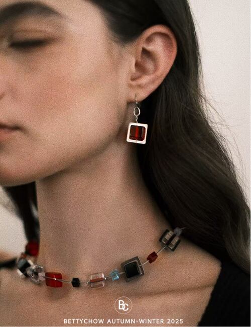ブランドネームBETTY CHOWのこのジュエリーは、幾何学的なデザインが特徴で、どんなスタイルにもアクセントを加えてくれます。