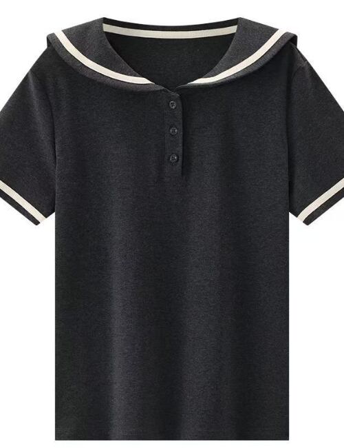 セーラーカラーが特徴的で、シンプルなデザインながらもスタイリッシュな印象を与えます。