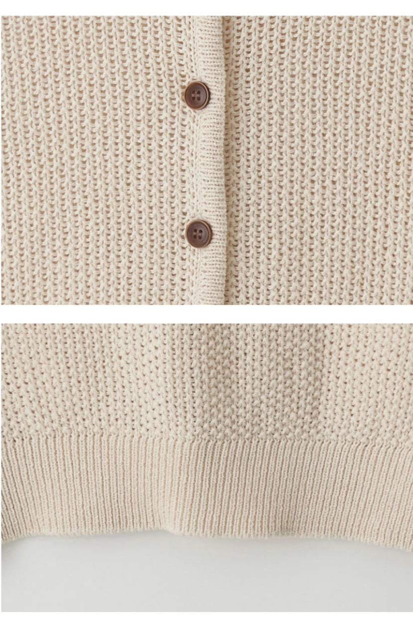 このカーディガンは、どんなスタイルにも合わせやすく、シンプルながらも存在感を放つアイテムです。