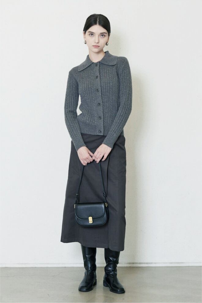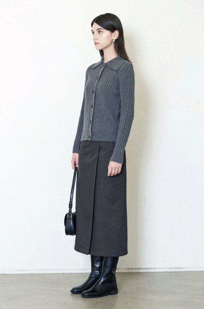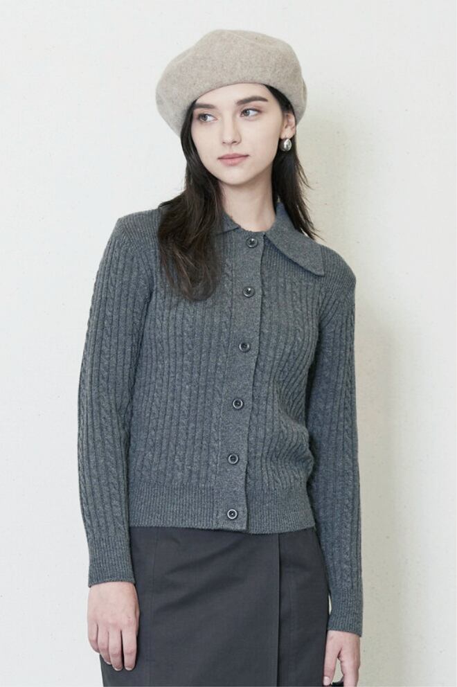 柔らかく温かなニット素材を使用したこのカーディガンは、毛玉になりにくい特性を持ち、大人の余裕感と上品さを演出します。