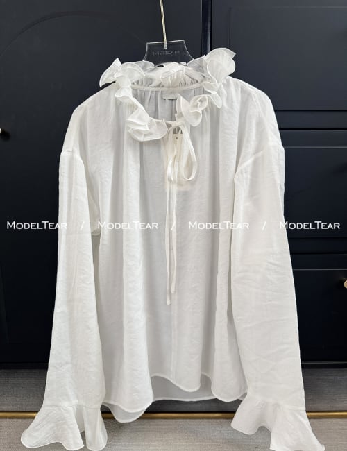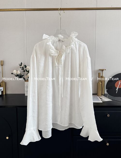 上品な印象を与える「Ruffle Tie Sheer Blouse」が登場です!