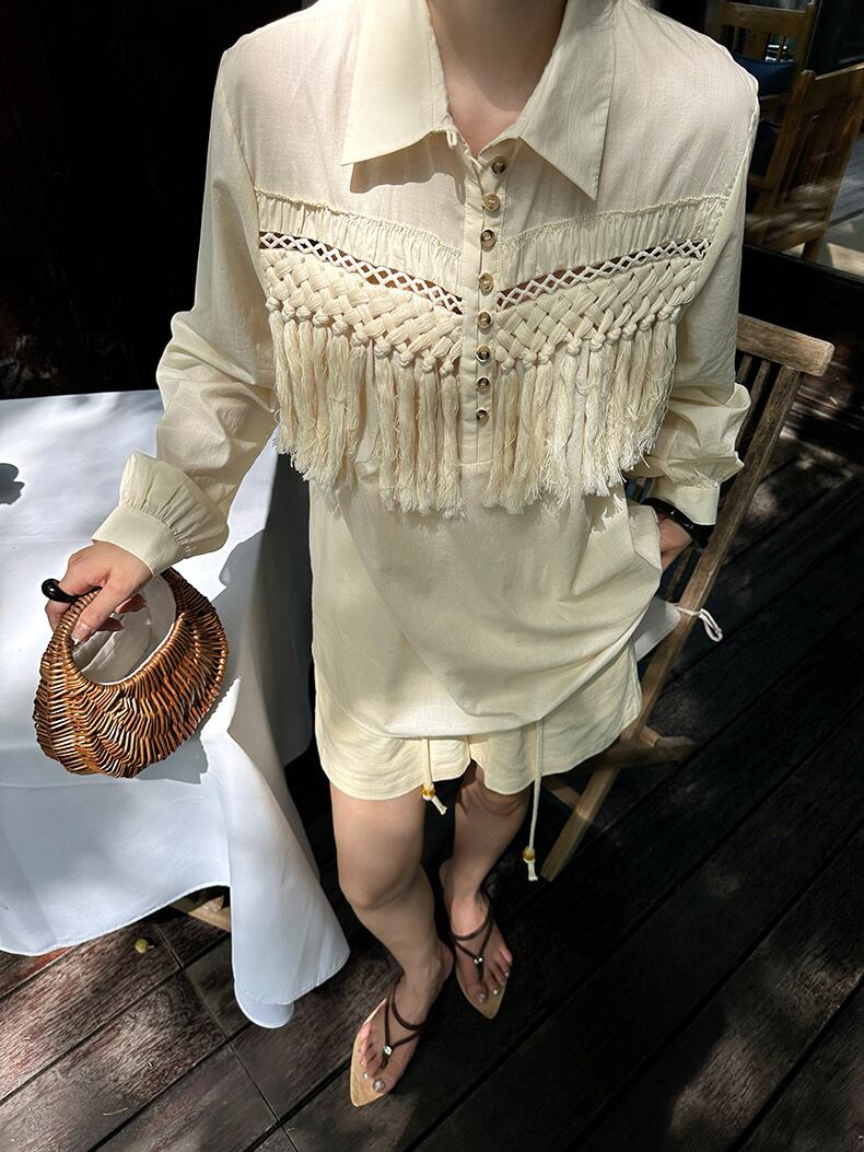 上質で魅力的な「Fringe Detail Cotton Tunic Shirt」が新登場!